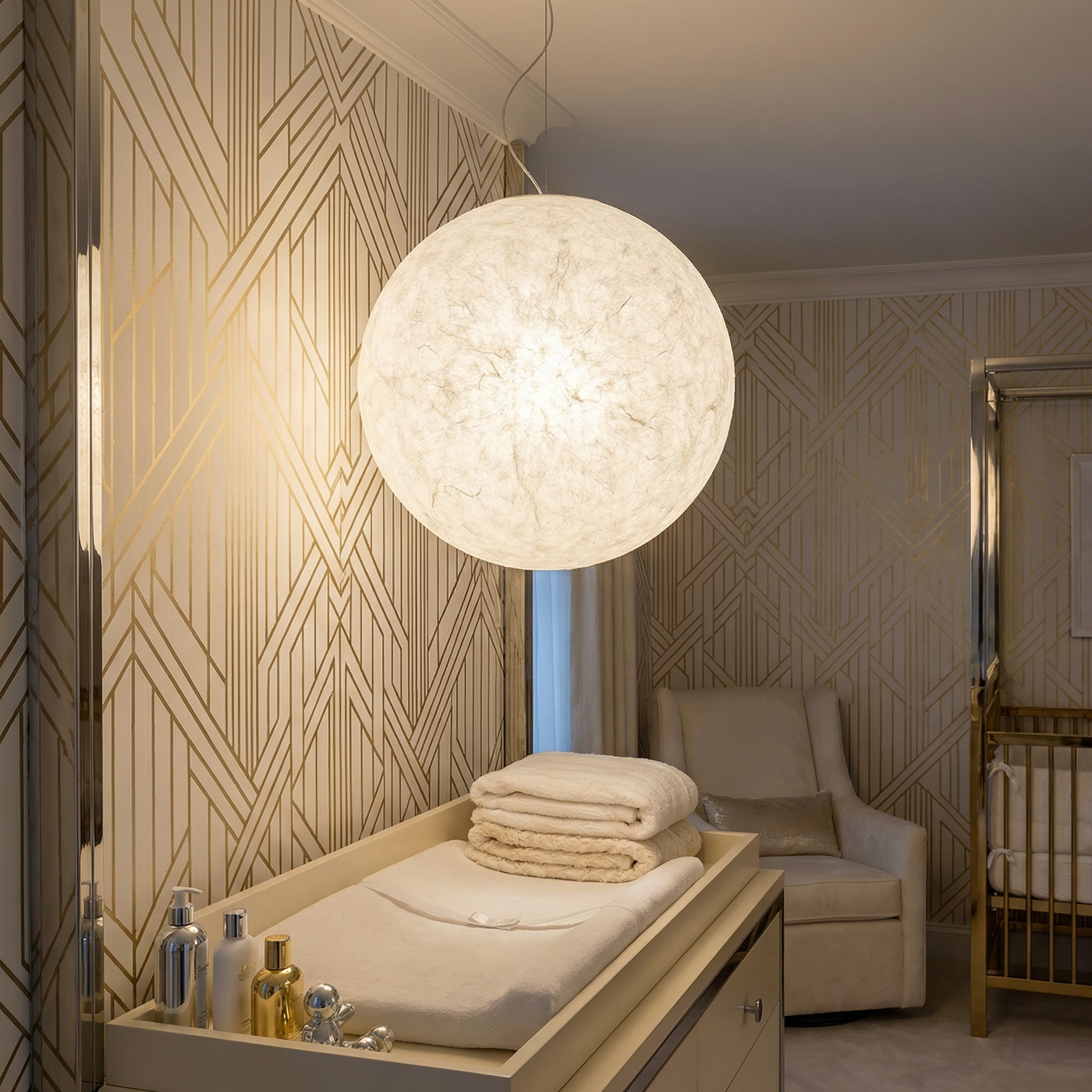 إضاءة معلقة LED معدنية بيضاء لغرفة نوم الأطفال – Lunaris