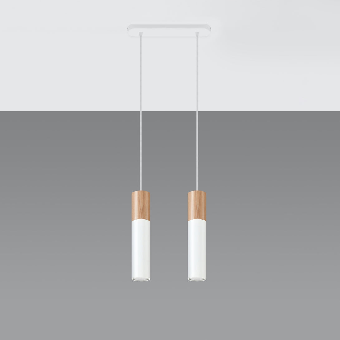 Scandinavian white wood pendant light 2 lights – Avelios model