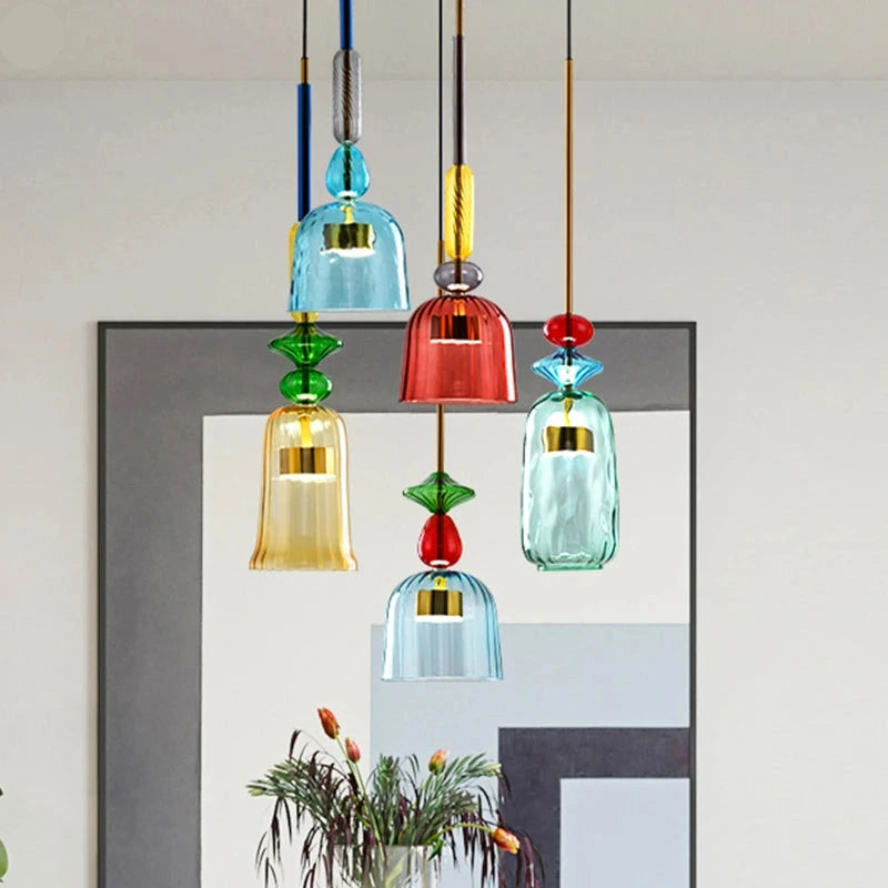 Ispirata a forme geometriche e colori vivaci, questa lampada a sospensione crea un'atmosfera calda e sofisticata. La sua combinazione di vetro e metallo valorizzerà il vostro arredamento.