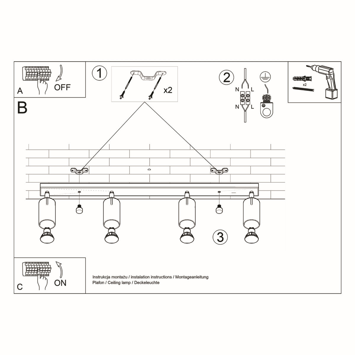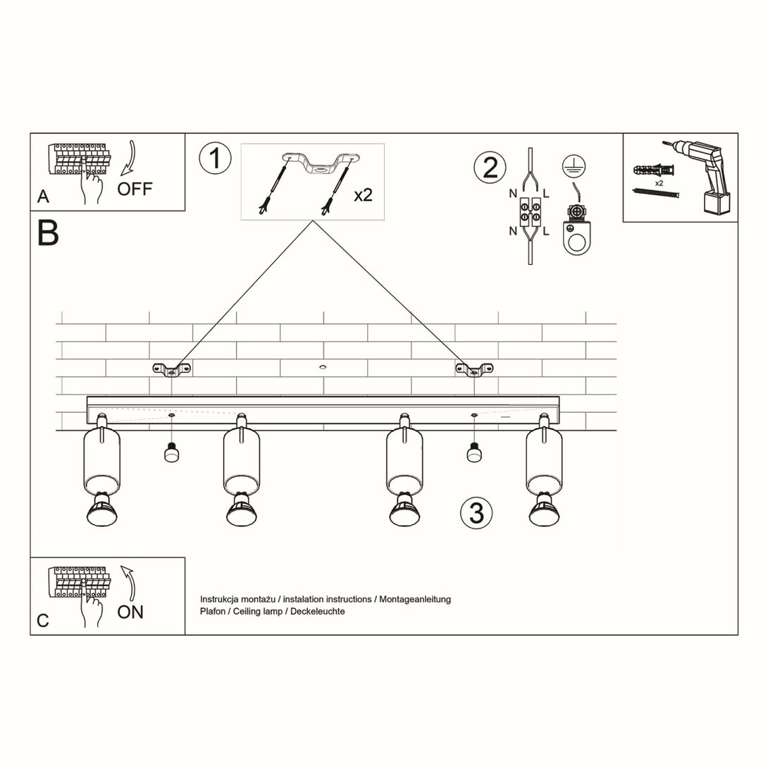 Fonctionnant avec des ampoules adaptées aux spots orientables (non incluses), le modèle Virelia vous laisse le choix de l’intensité et de la température de couleur pour ajuster parfaitement votre ambiance lumineuse. Ce plafonnier devient alors un allié du quotidien : éclairage général confortable, lumière ciblée pour les activités, mise en valeur de vos objets préférés. Virelia combine ainsi style, flexibilité et confort visuel pour sublimer chaque pièce avec une lumière sur mesure.