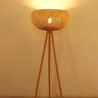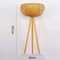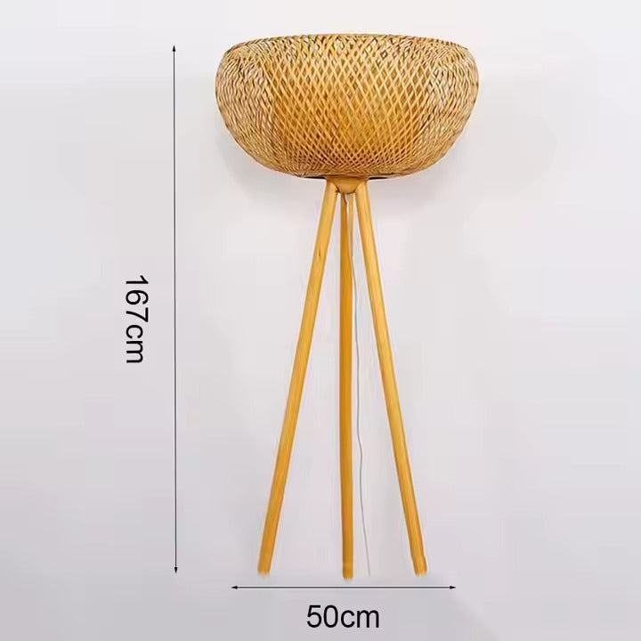 Candeeiro de pé em vime e metal preto para sala – Rotanique